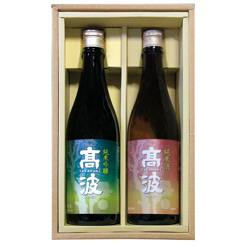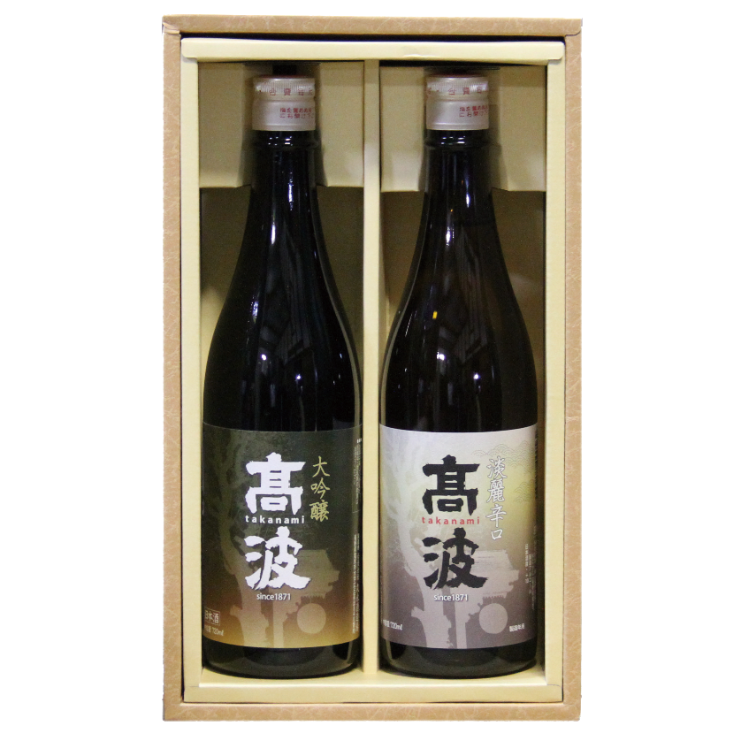 吟醸の部で入賞した自慢の「大吟醸」原酒と、純米吟醸の部で入賞した華やかな「純米大吟醸」。高波極めの逸品酒セットです。